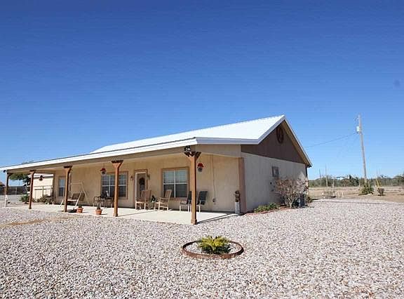 Country home on 5 acres just minutes away from shopping and restaurants. Large front covered patio great for enjoying the serene life. Home offers a split plan with 3 spacious bedrooms all with large walk in closets. Open living, dining and kitchen area make this home great for entertaining. Kitchen offers granite countertops and gas stove. Oversized garage great for extra storage or boat. Great soil! Trees and shrubs on property are irrigated and work on manual watering system. Produce include cucumbers,peppers,okra,watermelon and cantaloupe.