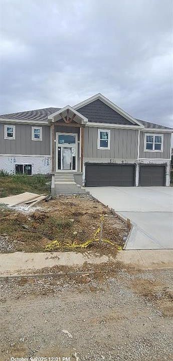 This beautiful home features a range of custom amenities that enhance both functionality and style. The heart of the home features a stunning kitchen with custom white cabinets, a spacious pantry, and an inviting island topped with gorgeous granite. Modern stainless steel appliances add both style and utility, while the covered deck, complete with a ceiling fan, provides a perfect outdoor stocked lake for fishing. The great room boasts LVP flooring throughout, complemented by a beautiful stone fireplace creating a cozy and elegant focal point. The laundry room is efficiently designed with tile flooring and custom cabinetry to keep things organized. The home includes two bedrooms with carpet, each featuring tray ceilings and ceiling fans for added comfort. The guest bathroom is stylishly designed with tile flooring and a tub, ensuring convenience for visitors. The master suite is a true retreat, featuring plush carpet and a spacious walk-in closet. The master bathroom boasts custom cabinets, a luxurious jetted tub, double vanity sinks with sleek black faucets, and a huge tile shower for a spa-like experience. The lower level includes an additional bedroom with carpet and a ceiling fan, along with a full bathroom featuring tile floors and a tub. The home is equipped with ample recessed (can) lighting throughout, showcasing its thoughtful design. Additional highlights include an oversized three-car garage and eye-catching stone accents on the front of the home, making it not only functional but also visually appealing. This property combines elegance, comfort, and practicality, making it a fantastic place to call home! PHOTOS ARE SIMULATED MORE TO COME, LAKE IS STOCKED.
