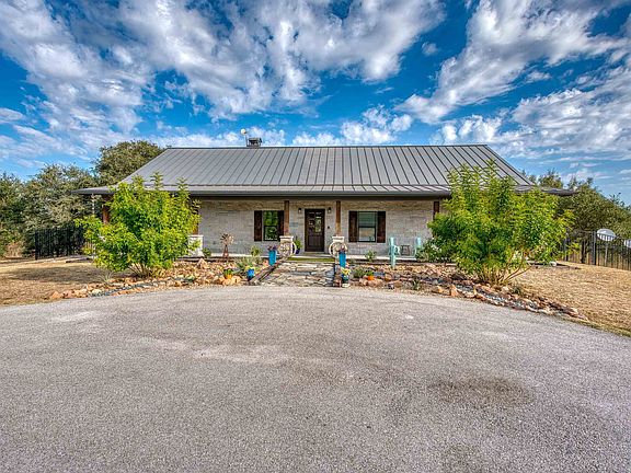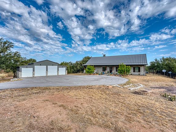 Looking for a newer, well built home on acreage, with privacy, a workshop and Lake Buchanan access? Welcome to 105 Keystone Rdg! A Ranch style home custom built by the current owners in 2018. It is 2,200sqft, 3 bedrooms, 2.5 bathrooms + an office nook and is situated on a private 9.4 acres with a community waterfront park and boat ramp. The home features a split floor plan with an open living, kitchen and dining area all overlooking the peaceful and private fenced yard. The kitchen features Kitchen Aid appliances, a gas range, Quartz counter tops, custom cabinetry and a large island. The large primary room has a fireplace, door the the back patio and en-suite with dual sinks with marble counter tops, an over-sized shower with back and rain shower heads. The back patio extends the length of the house and and is ready for entertainment of all kinds. Mounted smart TV, outdoor kitchen, and 7 person hot tub all convey! The home is quality built with 2x6 framing, metal roof, spray foam, & 100% stone (ask for the details doc) The 41x31 workshop has 4 front bay doors- 2-8x8 on the sides, 2-10x10 in the front center and 2-10x10 doors on the back center creating an open breezeway to the large back deck. Store your cars, lake toys, or make it into a fun game room. The Cliffs is a gated community with 2 parks (Diamond S and Water Ridge). Buchanan Dam has a country feel while close to Llano, Kingsland, Burnet and all of the Hill Country attractions. This home can be sold furnished and is move in ready!