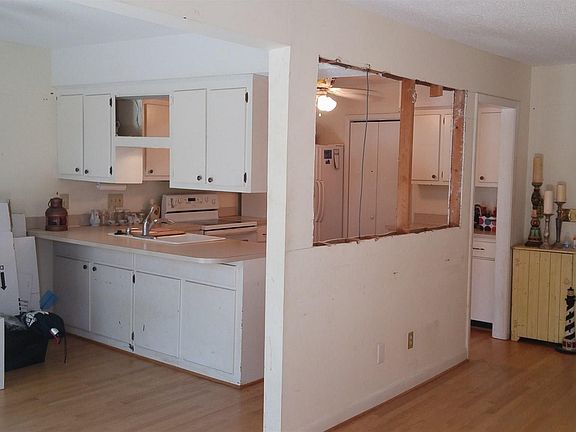 - Kitchen: Counter Tops-Formica, Floors-Hardwood, Cabinets-Painted