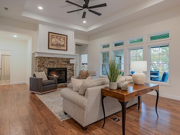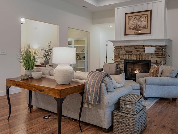 Custom stone fireplaceOpen floor planShiplap accentsWalk-in pantryPrivate covered porchCoffered ceilingsDrop zone
