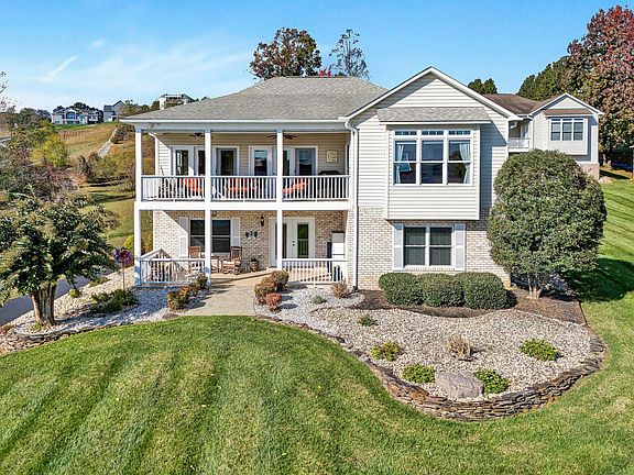Saunders Cove-Escape to the best location in this development with a level point lot with your own deeded assigned boat slip, and the ultimate views of the mountain, main channel & State Park. Enjoy the sandy beach and a peaceful and private setting in a low-traffic cove perfect for swimming and kayaking. The maintenance free home is immaculate in every way with extensive recent upgrades, including all new kitchen appliances in 2022, GE profile double oven, microwave, and glass cooktop, bosch dishwasher, newer installed kitchen back splash, tiled main floor primary walk-in shower, finished lower level bonus room, new hotwater heater in 2020 and added water filtration system, replaced front sidewalk pavers with stamped concrete surface, resurfaced garage and back patio floors with decorative epoxy coating, removed old mulch around home and replaced with river rock and new vegetation, yard includes lawn irrigation which pumps from the lake. Some furnishings, TV on main floor, 2 kayaks and tritoon boat with less than 116 hours can be purchased with a separate Bill of Sale. Contact listing agent for details. Just minutes away from community amenities. Ready for your enjoyment.