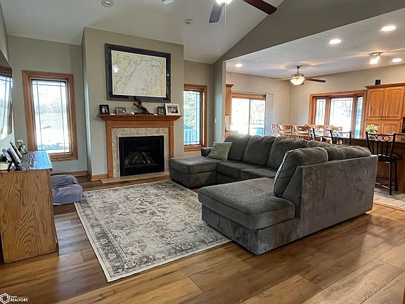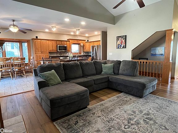 This stunning Albia home showcases a beautiful open concept living/kitchen/dining area, functional design, & great yard in a fantastic location. The living area highlights new LVP flooring, a vaulted ceiling, & fireplace that seamlessly flows into the kitchen which boasts a large island w/ bar seating, oak cabinets, Cambria quartz countertops, coffee bar, stainless steel appliances, tile floor, & large pantry. Off the living area is a hallway leading to the laundry room, bedrooms & 2 bathrooms, one of which is a spacious main bedroom showcasing a large walk-in closet & ¾ bathroom w/heated tile floor, dual sinks, backlit mirrors, marble tile walls, & striking floor to ceiling backsplash. The full, walk-out basement offers impressive space w/ multiple options for use w/ a secondary living area, built-in desk, storage closets, ¾ bathroom, & a 4th non-conforming bedroom w/ an exercise area & access to the utility room. The home sits on a double lot measuring just over 1/2 acre in size & features an extensive yard, storage shed w/ electricity, composite deck, 2 car attached garage, established landscaping, & mature trees. Other features include: a new washer & dryer 6/2023, a new stainless-steel refrigerator 9/2023, new motor in the a/c unit 10/2024, & new LVP flooring in the living area, bedrooms & laundry area in 11/2023. Located in the Parkview Estates subdivision, this property is close to the City Park, Baseball & Soccer Fields, & Albia Middle & High Schools. Covenants apply.