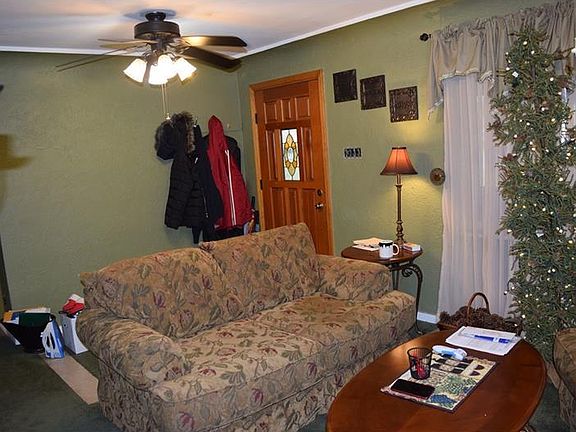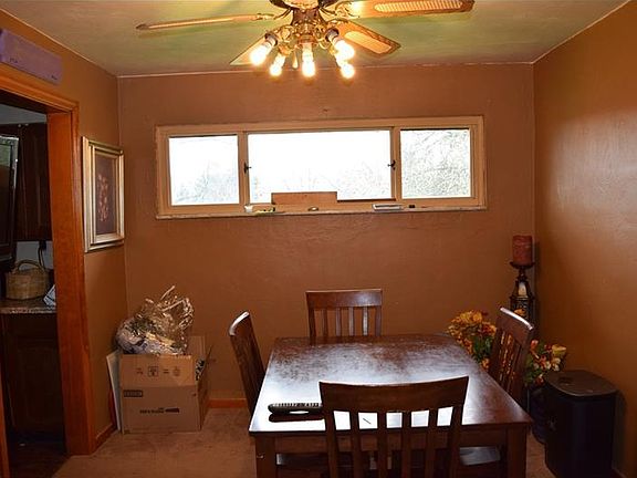 Endless potential in this affordably-priced brick home on a corner lot. Great investment property that needs cosmetic updates and finishing. Kitchen has room for a small table and includes fridge, dishwasher, electric stove, and microwave. 3rd bedroom was converted into a dining room, but there is space in the basement to add additional bedroom(s). Partially finished basement has several large rooms, including a 14x11 room that could be made into a family room, two decent sized rooms that are currently storage, and a laundry room / second kitchen (which includes several appliances: fridge, dishwasher, stand-up freezer, chest freezer, and gas stove). Washer and dryer are included in sale. Large yard has room to add off-street parking or a garage. Enclosed porch is built but not complete. A must see to appreciate its potential!