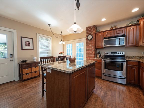 Private inviting deckQuality renovationsPrivate acreFirst-floor laundryCenter islandTall cabinetsExposed brick chimney