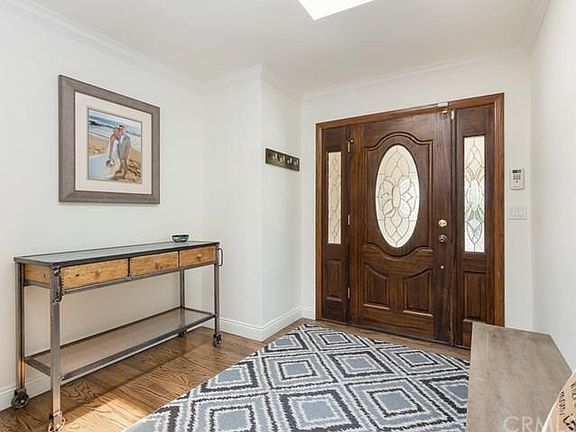 Welcome to an incredible sprawling home in Miraleste Pines. This home enjoys all its living space and houses all 5 bedrooms on one level, two of which are en-suite. The front yard has massive pomegranate trees that line a private seating area that is protected by mediterranean walls. The foyer is especially inviting by greeting guests with a warm skylight that breathes natural light into the home. The original hardwood floors have been modified, modernizing with materials that cannot be manufactured today. The open layout focuses on the family room that has a fireplace and clear view into an amazing kitchen which integrates this entertaining area of the home. The kitchen enjoys beautiful strong counters and white bright cabinets that create a Nantucket atmosphere with an attached dining area. The property has a reverse osmosis water filtration system, ceilings fans, new plumbing, a retrofit foundation, drip system in the garden, and native CA drought resistant plants.