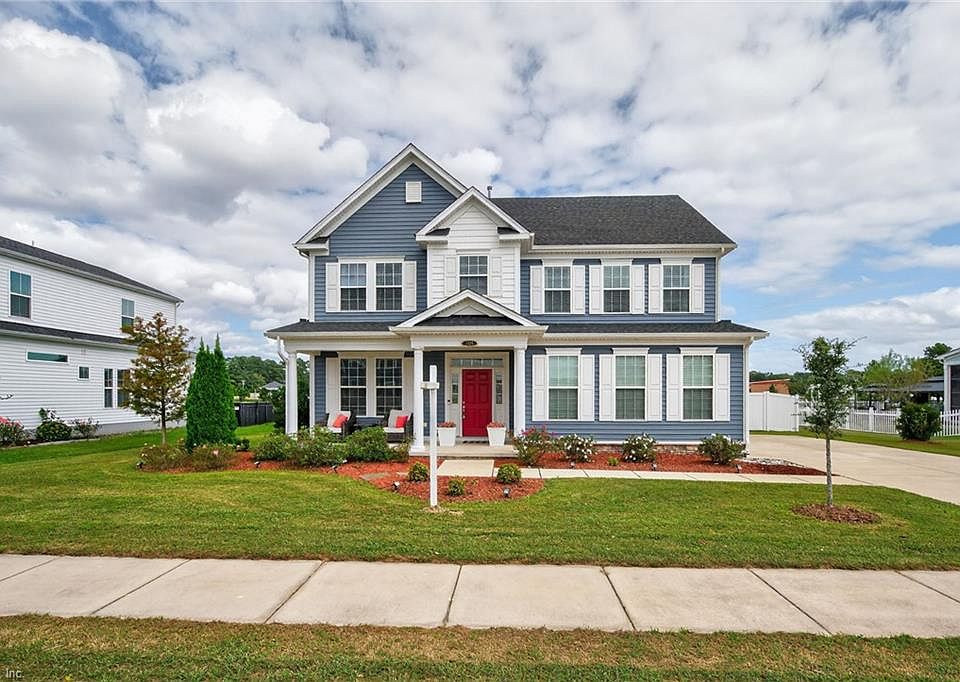 This 5-bedroom, 3 full-bath home sits on nearly half an acre and offers the perfect blend of space, comfort, and serene water views beginning with a charming covered front porch that invites you in. Inside, you'll love the open-concept floor plan, highlighted by a gorgeous kitchen featuring Quartz countertops, Stainless steel appliances, A spacious island, double-door pantry, oversized mudroom perfect for everyday living. A cozy fireplace anchors the living area, seamlessly connecting the kitchen and dining room for a warm, welcoming atmosphere. The first-floor bedroom offers ideal flexibility perfect for guests or home office. Upstairs, your private retreat awaits. The spacious primary suite includes,2 walk-in closets,& double vanity, oversized soaking tub, A tiled walk-in shower, private water closet. Outdoor Living at Its Best, A covered patio with pergola ideal for relaxing or entertaining. A large fully fenced backyard and peaceful water views to enjoy year-round.