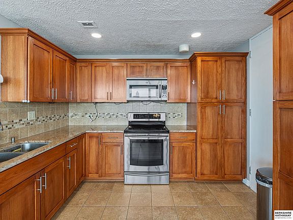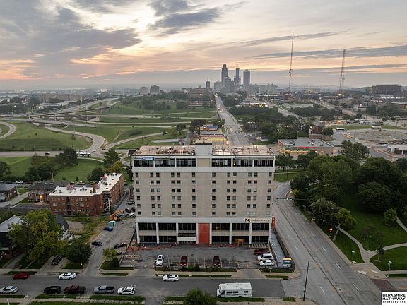 Breathtaking downtown skyline views from this rare 3-bed, 2-bath, East-facing, penthouse condo with over 1,600 sq. ft. These windows fill the open layout with natural light. Features include an updated kitchen with stainless steel appliances (all stay) and rare washer and dryer in-unit! Fresh paint, new flooring, custom window treatments, and generous storage, plus a hallway closet for extra storage. Main shower brand new! All new ceiling fans. Amenities: fitness center, shared rooftop deck, security, and two secure underground parking stalls. Pets Welcome! Prime location close to Midtown Crossing dining, shopping, and entertainment, as well as Creighton University. HOA covers water, sewer, AC, Furnace.
