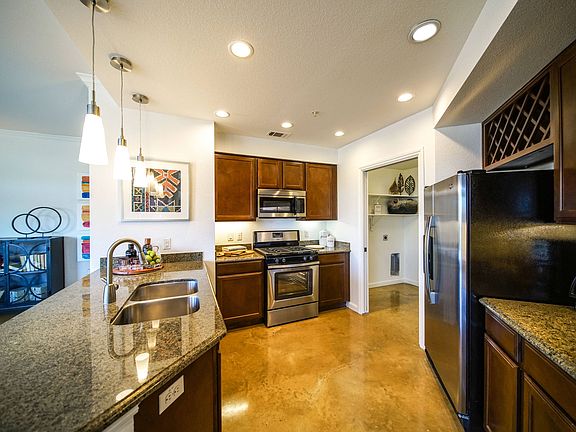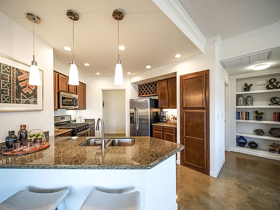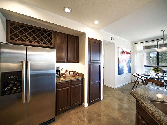 - Exterior features: Built in Bookshelf, Business Center, Coffee & Hot Tea Bar, Complimentary Wi-Fi in Common Areas, Conference Room, Crown Molding, Flooring: Concrete, Garages Available for Rent, Granite Countertops, High Ceilings, On-Site Courtesy Officer, On-Site Maintenance, On-Site Management, Outdoor Kitchen, Pet Park, Soaking Tub, Stainless Steel Efficient Appliances, Storage Units Available for Rent, TV Lounge