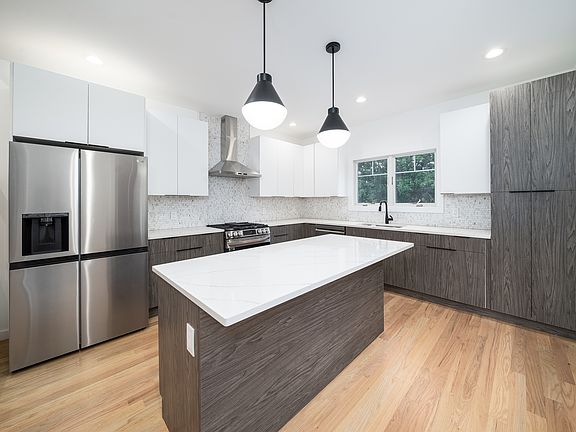 The main level is bright and airy, featuring an open floor plan with hardwood floors throughout. Enjoy a living room, dining area, and a stylish eat-in kitchen with an island, custom cabinetry, tile backsplash, and stainless steel appliances, plus a powder room for added convenience. The second floor has a large primary suite with a walk-in closet and an en-suite bathroom with a double vanity, along with a second bedroom, full bathroom, and laundry area equipped with a full-sized washer and dryer. The third floor adds two more spacious bedrooms, another full bath, and extra storage space.