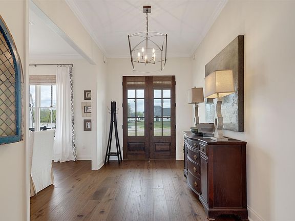 Lake View from your front porch! Stunning 4 bed/3bath home in sought after Twin Lakes. 1 year old home w/ many extras. Beautiful vaulted ceilings with cedar beams in great room. Stunning chefs kitchen with butlers pantry and large family island. 2nd private bed down. Large windows throughout with custom window shades. Wide plank wood floors, covered patio with gas fireplace overlooking large fenced yard. Upstairs has 2 more beds with jack/jill bath, a large bonus room, and even a exercise room.