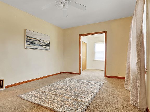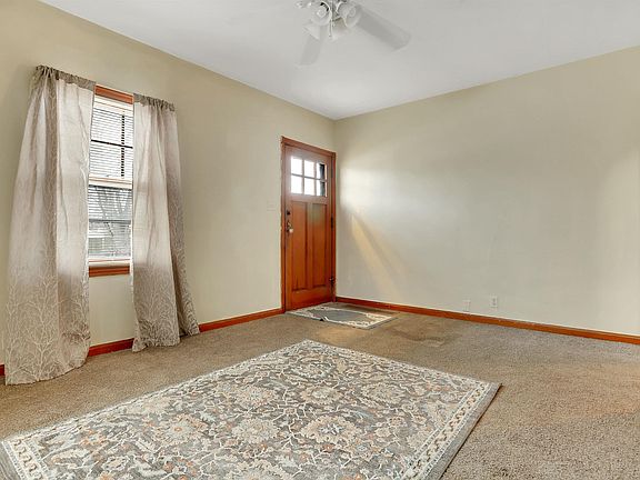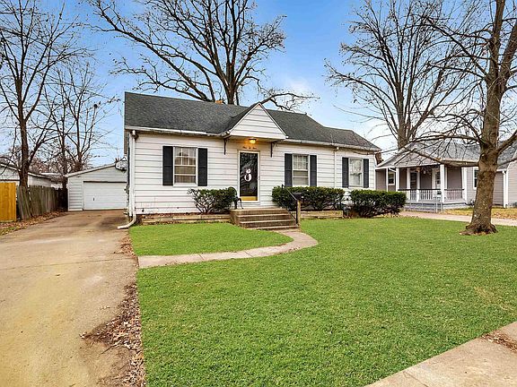 This updated Eastside 2 bedroom home has a full, partly finished basement, a 2.5 car detached garage, partially-fenced yard, and cute curb appeal; all available under $70,000! The living room has an attached bonus area with a closet that could double as a small bedroom or office space. All appliances included, the L-shaped kitchen has a chair-rail, views of the back yard, and extra space for a small dinette. Two bedrooms sit adjacent from the full bathroom, both with hardwood floors underneath the carpeting (along with the rest of the house!). The full basement has a dedicated laundry room with a utility sink, a partly finished room that would be great for storage or a workout area, and a separate area that's partially finished with two closets. The mostly fenced yard has a 2.5-car detached garage with electric service and an extra-wide driveway.