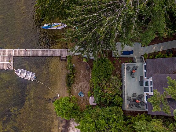 We are thrilled to present this spectacular Great East Lake home that has been cherished for generations. Impeccably maintained throughout the years, this home radiates care and attention to detail. From the moment you step inside, the breathtaking panoramic views of Great East Lake will captivate you from every window. The open-concept layout effortlessly connects the kitchen, living, and dining areas, creating a spacious and inviting atmosphere perfect for gathering with family and friends. The kitchen offers ample counter space, abundant cabinetry, a hidden pantry, and stunning water views from nearly every angle. On warm evenings, relax on the oversized deck, or cozy up inside by the stove. One-level living is easily achievable with the primary suite on the first floor, where sunlight pours through the windows. The suite features a private, full bath with a double vanity and a walk-in closet. For added convenience, the washer and dryer are located on the first floor, adjacent to an additional ¾ bath. Upstairs, you'll discover multiple bedrooms and versatile bonus rooms. One of the most impressive spaces is the nearly 400 sq/ft bonus room above the primary suite. Outside, enjoy gardening space, privacy and 65 feet of pristine sandy shoreline. Even at the end of the private dock, the water features a sandy bottom that gradually gets deeper. This remarkable home was completely renovated in 2001, offers endless possibilities and countless ways to enjoy life on the lake.