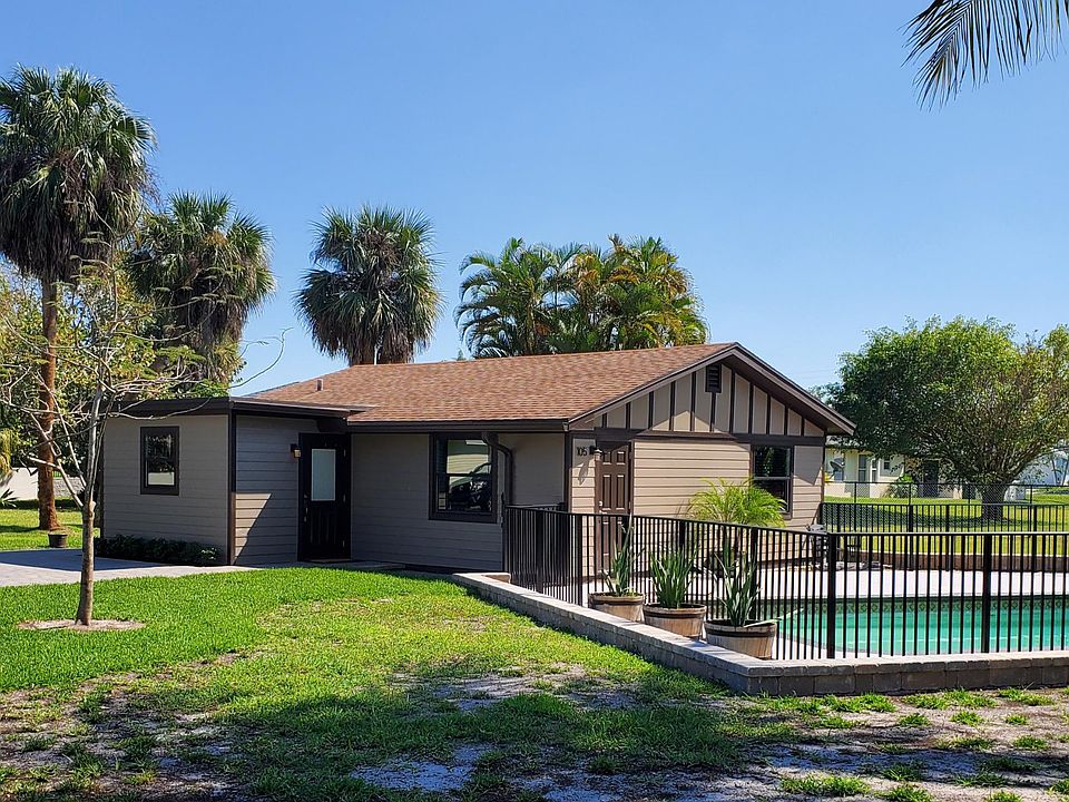 Private pool is included with 1BR/1 BA home, completely remolded, in the center of Jupiter. All new cabinets and appliances, flooring and impact windows. Quiet neighborhood area. No HOA. The pool is large and right out the back door. Plenty of space around the pool area for friends. This is a great little house and you will love it immediately.