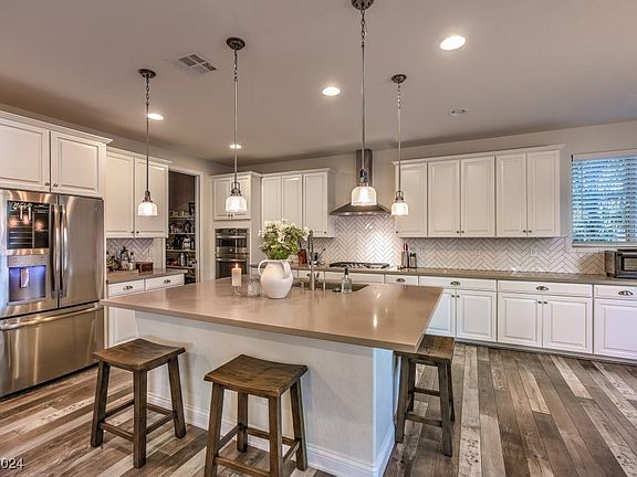 Gorgeous home in booming south valley! Close to west Henderson commercial district, easy access to Strip, I-15. Wonderful floorplan with plenty of space! Palatial primary suite with expansive walk-in closet, walk-in shower. 4 bedrooms, a loft and a downstairs den/office. Wood laimnate floors, high cielings, 8 foot doors. Huge island kitchen with quartz countertops and walk-in pantry. Indoor/outdoor living with the massive multi-slider doors. Built-in BBQ, covered patio and beautifully landscaped backyard. No homes behind for privacy! All furniture available for separate purchase.
