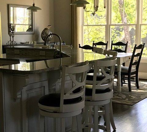 - RoomKitchenFeatures: Granite Counters, Kitchen Island, Pantry, Recessed Lighting, Floors-Hardwood, Bar, Backsplash-Tiled, Cabinets-Painted