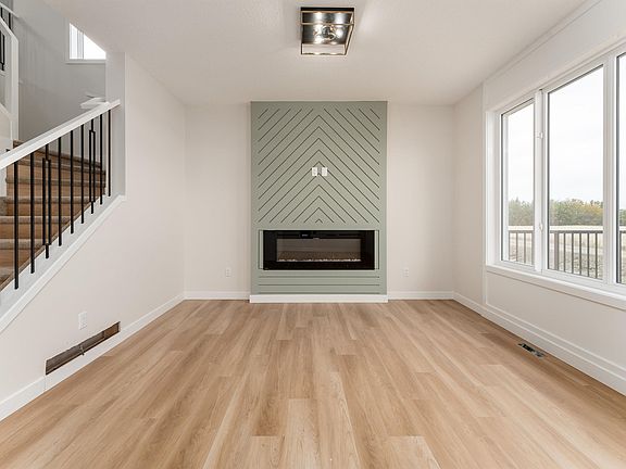 Experience modern living within this brand new 1587 sq ft duplex offering the perfect balance of style and comfort. The main floor boasts an open concept design with oversized windows that fill the home with natural light, a welcoming living room with fireplace, a sleek kitchen with abundant counter space, and a convenient 2pc bathroom. Upstairs you will find a versatile bonus room along with three spacious bedrooms including a primary retreat complete with a walk in closet and a 5pc ensuite, plus another full 4pc bathroom. The unfinished basement provides endless potential for future development while the double attached garage ensures convenience and storage. Step out onto your private deck and enjoy warm evenings in a vibrant community close to parks, trails, schools, and shopping. With brand new appliances, a separate entrance, and the pride of being the first to call it home, this property is ready to welcome you into the lifestyle you have been waiting for. Some photos are virtually staged.