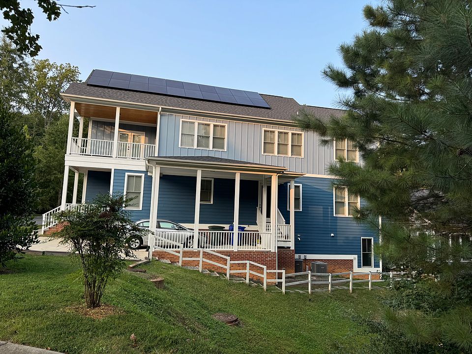Experience modern living in this beautifully designed home featuring solar panels and battery backup. Just minutes from the UNC Chapel Hill campus an easy bike ride away this property boasts stunning hardwood floors on the first floor, an open floor plan with 12' ceilings, and abundant natural light from numerous windows. Enjoy the comfort of ceiling fans in every room and a chef's kitchen equipped with stainless steel appliances, ample counter space, and elegant granite countertops. The first-floor master suite includes a spacious walk-in closet with custom wood shelving and a luxurious master bathroom with a zero-entry shower. The second-floor loft offers flexible space for an office or entertainment area, while the adjacent bedroom opens to a patio with picturesque views. Residents also benefit from community pool access and scenic trails. A partially furnished option is available, including a bed, couch, and table. No pets, No Smoking