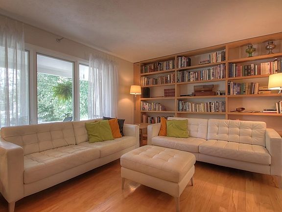 Wonderful home, incredible details with a Mid Century Modern feel. Beautiful built in's throughout! Welcoming covered porch, Living Room with handsome bookcases and cabinetry. New windows throughout most of this home! Dining area overlooking big level back yard. Great kitchen with center island; soft close drawers, range, microwave, dishwasher, new fridge & pantry! Awesome laundry room with cabinets, sink and counter. Den has double glass doors to a the spacious deck! Half bath on main level. Master BR; hardwood floors, really cool bath!