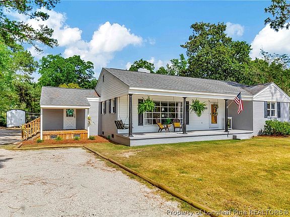 Welcome home! This well maintained traditional ranch style family home with 3 bedrooms and recently remodeled baths will not last long. Sitting beautifully on .44 acres, the home includes timeless hardwood floors, an extensive living room with light filtering picture window, a fireplace, open concept kitchen with large center island that features a smart refrigerator, separate dining and laundry rooms. Two porches make a perfect setting for entertaining family and friends. Exterior features include a 24x24 wired garage and an additional wired detached storage building with attached shelter. The washing machine, dryer and swimming pool will convey with the property. Located only minutes from I-95 with easy access to grocery stores, banking establishments, local retail shops, gas stations, restaurants and if you're a golf enthusiast, this home is located directly across from Pinecrest Country Club. Sellers are motivated! Call listing agent at 910-374-9362 to schedule your showing!