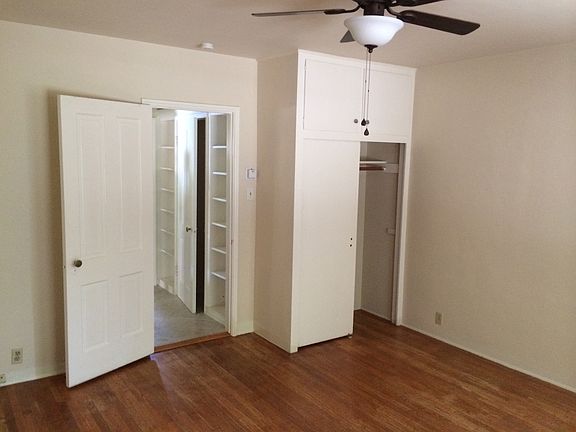 Very roomy one bedroom single family residence with spacious living room. Includes built in fire place. Hardwood and tile floors. Private yard. Lots of closet space. Window unit A/C. Hook ups for laundry. Owner pays for water and trash. Off street parking space. Must have good credit.