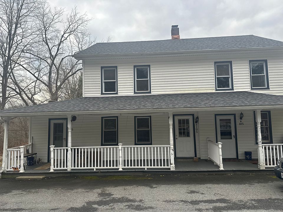 Light filled apartment in a colonial style multi-family home set on 4 acres of land close to town. Apartment is a second floor walk up to a spacious living room, eat-in kitchen, two bedrooms with large closets, and a full bath. Plenty of parking. No smoking.