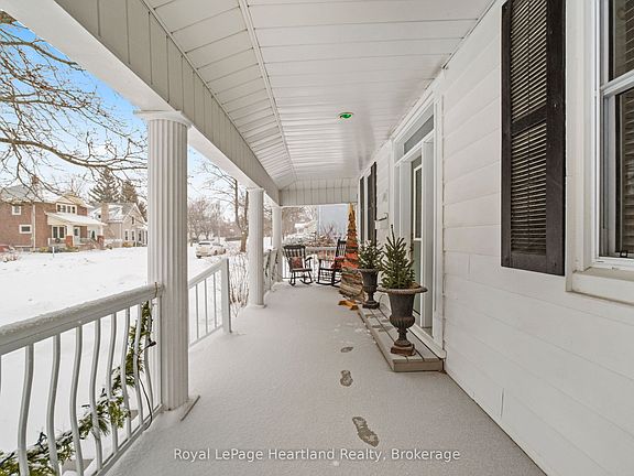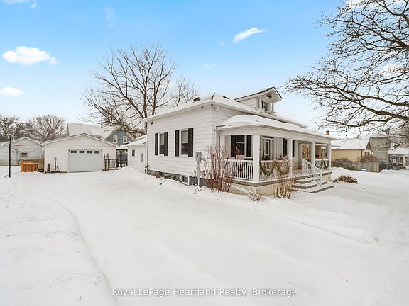 Standout curb appeal in Goderich's desirable West End, this charming Ontario cottage-style home draws you in immediately with its beloved covered front porch and striking dark shutters, and sits on a generous 96.82' x 106.85' Lot with a detached combination 20'x18' single-car garage with 18'x11' workshop. Inside, the main level offers a large living and dining area with character-rich original hardwood floors, cove mouldings, and a great location for a gas fireplace, followed by a spacious eat-in kitchen featuring ample cabinetry, stainless steel accents, 2024 pot lights, and a 2025 stove and dishwasher. Off the kitchen into a bright family room there's views of the fully fenced backyard from the newly-created patio door, out to two decks with a pergola and the garage/workshop. The main floor is complete with a comfortable primary bedroom with 4-piece ensuite-style bathroom, and a nearby second bedroom; while the upper level provides a cozy third bedroom with a dormer window and its own three-piece ensuite. With gardens abound, spending time outside won't be hard in 2026, gear up for the grilling season with a new 2025 gas BBQ line, too. Recent updates include new eavestroughs and gutter guards (2024), a five-inch air cleaner added to the furnace (2024), and new toilets in both bathrooms, owned hot water tank (2023), forced-air gas furnace (2018), roof (2017), central air, and a central vacuum system, all just minutes from Goderich's Town Square with shopping, restaurants, and within walking distance to Lighthouse Park and Lake Huron beaches and sunset. The charm you've been waiting for, in the location you've been looking at, is finally here and ready for you. Don't wait!