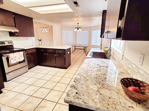 Step into this nearly 1,900 sq ft, 5bed, 2bath haven, & experience a symphony of style and functionality. This traditional gem, with its brand-new roof, exterior paint, new flooring, and updated granite countertops in the kitchen, epitomizes modern convenience and timeless charm. The interior boasts fresh, crisp new paint & new interior doors & trim, creating a pristine backdrop for your personal touch. The bathroom showcases a stunning new tile shower, adding a touch of luxury to your daily routine. If five bedrooms exceed your requirements, easily convert one into an office or hobby space. Outside, you'll discover the convenience of RV parking and a carport, perfect for housing all your vehicles and toys. The lush, freshly laid sod lawn invites outdoor gatherings and play. This move-in-ready masterpiece offers a blank canvas with a simple yet sophisticated style, inviting you to make it uniquely yours. Don't miss the opportunity to call this home yours.