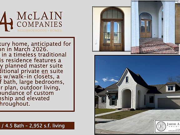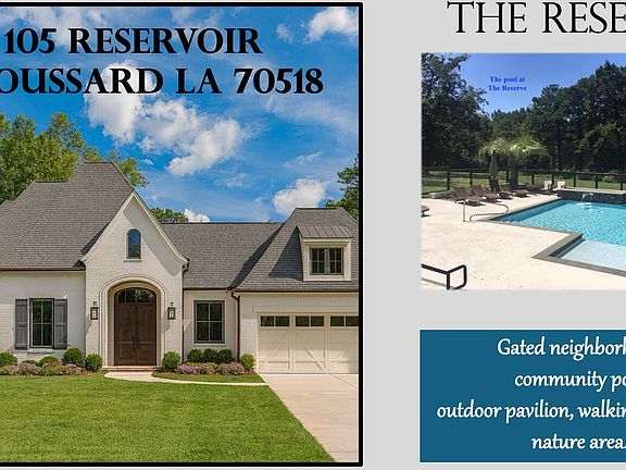 Tucked behind private gates and surrounded by the quiet beauty of nature, The Reserve Estates is a luxurious and intentionally private neighborhood offering a rare blend of elegance, seclusion, and environmental stewardship, comprised of just 43 exclusive homesites. Just steps from this home is a private 10 (+/-) acre nature preserve, where meandering water features wind beneath mature live oaks and towering cypress trees, creating a peaceful setting that feels far removed from everyday life. This exceptional new construction by McLain Homes, one of Lafayette's premier builders, showcases timeless traditional design paired with thoughtful modern luxury, offering 4,584 square feet under roof with 2,952 square feet of refined living space in a one-story layout featuring four bedrooms and four-and-a-half baths. The home's classic character is evident in the Old Chicago antique brick entry and exterior gas lanterns, while inside, wood floors flow through the living areas with custom tile in all wet spaces and a foyer highlighted by groin ceilings and custom wood floor designs. The living room, kitchen, and dining areas are unified by antique wood beams and rich ceiling finishes, creating a warm, inviting atmosphere, with a fireplace, expansive windows, abundant natural light, and serene views. The kitchen blends beauty and function with Taj Mahal quartz countertops, a mahogany custom hood, custom cabinetry with specialty storage, and a walk-in pantry. A thoughtfully designed triple-split floor plan offers a private primary suite, guest suite, and two additional bedrooms, each with its own en-suite bath and walk-in closet. Outdoor living includes over 700 square feet of covered space with a full outdoor kitchen and fireplace, complemented by a three-car garage. Contact your realtor to see the attached floor plan and schedule a private walkthrough today!