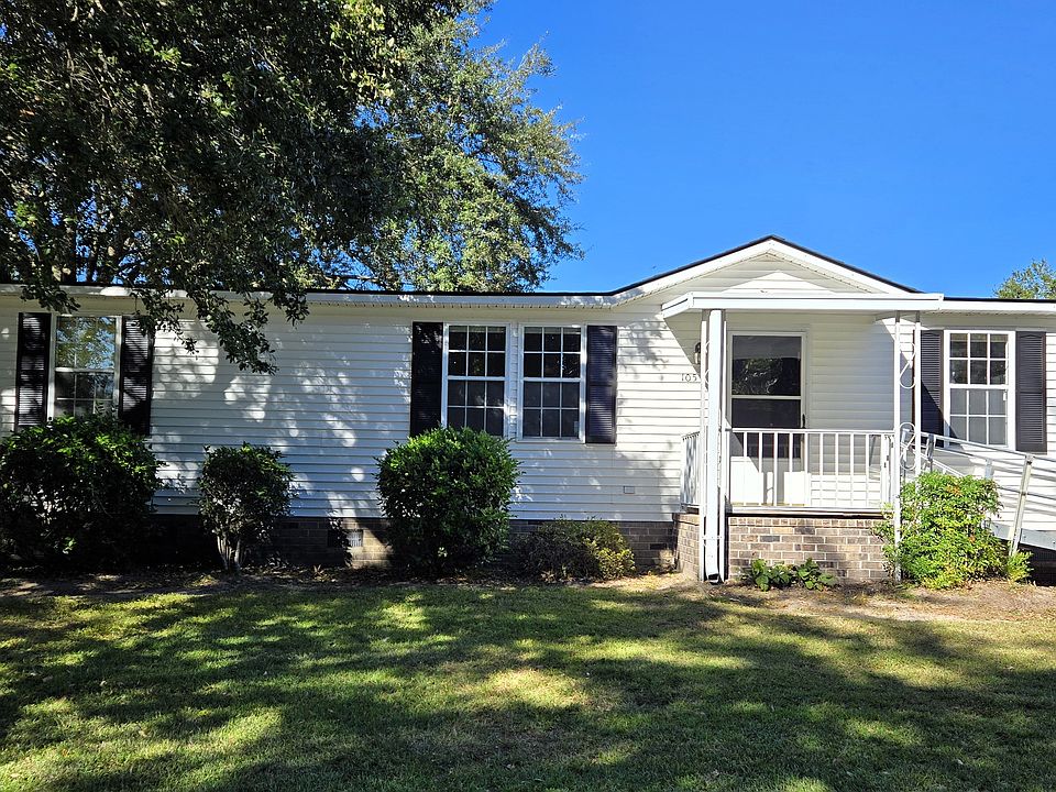 Welcome to Southern Palms, an active, busy 55+ gated community. This charming 1,344 sq ft manufactured home on a corner lot offers a warm and inviting vibe. With 2 bedrooms, 2 bathrooms, and a roomy interior, this home features new carpet and paint. A fantastic 10'x22' screened-in porch is perfect for relaxing, and a walk-in tub provides a restful retreat after a busy day. Enjoy area shopping and dining options near this vibrant neighborhood. This is the perfect place to call home!
