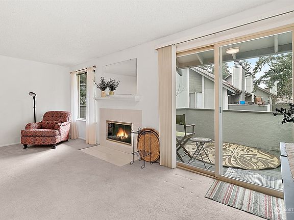 Well maintained top floor 1 bed/1 bath condo ready for you to move in and make it yours! Light and bright floor plan featuring large bedroom with walk in closet and laundry. Relax in your spacious living room w/lovely wood burning fireplace. Enjoy the upcoming warmer weather on the extra large deck off of the dining room overlooking the lovingly maintained grounds. All appliances stay including newer washer & dryer. Clubhouse with exercise room, athletic court, hot tub and pool! Centrally located between Seattle and Tacoma just minutes from freeways, shopping restaurants, parks & schools.