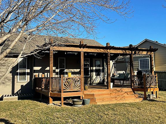 Very well maintained 4 Bedroom 3 bath home in an established neighborhood with community pool and playground. Great Goddard Schools, NO SPECIALS and low HOA dues!!! NEW AC unit in 2020. Upstairs you will find a nice kitchen with new hard wood floors, center island and pantry closet, electric range, dishwasher, garbage disposal and space saving of microwave. Nice size dining room with bay windows vaulted ceilings and hardwood floors. In the living room you will find floor to ceiling gas fireplace, vaulted ceilings with built in plant shelves, oak banister and tile entry and NEW carpet throughout the upstairs. Very spacious Master bedroom with vaulted ceilings, boxed out transom windows with seat and walk-in closet with laundry chute. Nice master bath with huge soaker tub and separate shower. 3 bedrooms on the main level. Downstairs you will find a large family room. Extra-large bedroom with walk in closet. A 3rd bath and a bonus room that can be used as a home office, playroom, craft or storage room. Spacious 24x14 deck with attached cedar pergola. 8x12 storage shed with overhead storage. Well-manicured fenced yard with sprinklers and large shade trees no neighbors behind you. 2 car garage. NEW Heritage 30 year roof in 2019. ** Home available to show starting 3-12-21. Call Chris today at 316-250-5704 to schedule a showing. **