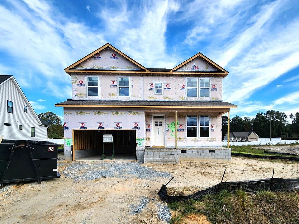 Welcome to the stunning Rivercrest II plan in Carsons Landing! This thoughtfully designed two-story home blends functionality with comfortable, modern living. Ideally located near McGees Crossroads, you'll enjoy convenient access to Garner, Raleigh, and Fayetteville. The open-concept floor plan is perfect for entertaining, while the spacious main-level primary suite offers a private retreat complete with an oversized walk-in closet, dual vanities, a relaxing garden tub, and a walk-in shower. Upstairs, you'll find three additional bedrooms, a versatile loft area, and two full bathrooms, providing plenty of room for everyone. Step outside to the covered back deck and take in the view of your expansive backyard—the perfect place to unwind or host gatherings. Welcome Home!