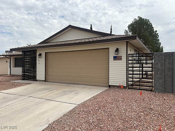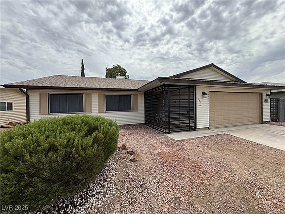 Enter the double door front entrance into your charming fully remodeled, single-story, ranch style Las Vegas home. This 3 bed/2 bath upgraded property showcases its original stone, dual-sided, log wood fireplace- a highly desired, hard-to-find feature. The newly completed open floor plan is thanks to the design & vision of the previous owner. Granite countertops, stainless steel appliances & breakfast bar makes this home perfect for entertaining while the living room features a step down, providing for great conversation near the fireplace. Barnyard doors in the primary bedroom & secondary bedroom are additional tasteful upgrades made to the home. Completely upgraded bathrooms make the interior of the property complete while the modern iron gate in the front entrance allow for depth & addn'l outdoor living space with the rear yard. Appropriately sized solar arrangement is paid in full & will also convey with the property to aid in lower utilities. Recessed lighting throughout. NO HOA!