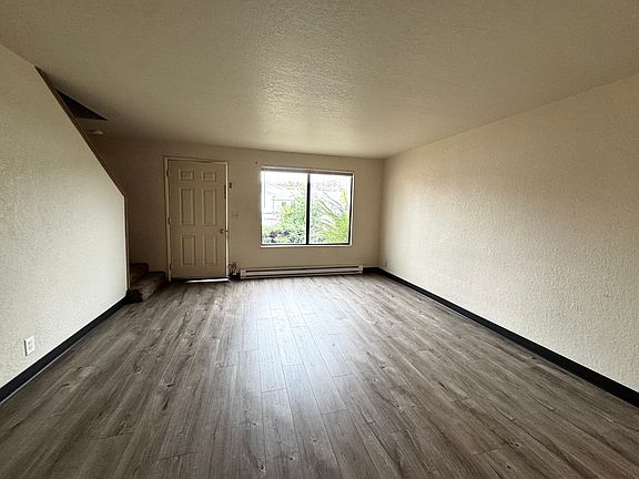 This is a cute 2 bedroom 1 bathroom townhouse in a tri-plex, located in the cute little town of Eagle Point. When you enter the bright living room you will notice the brand new hardwood floors and open floor plan to the dining room. The sliding glass door brings in a lot of light and opens up to your own fenced private area out back. Upstairs you have 2 nice size bedrooms, a linen closet and a full bathroom with tub/shower. The unit also has an exterior storage room to provide a locked place for extra storage. This unit will be move in ready on or very near November 1st.