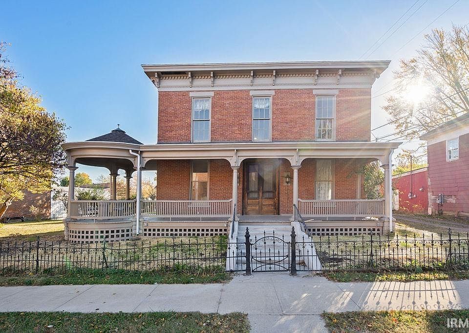 Tuckpointed brickworkClassic kokomo bricksTwo dining spacesTwo-car garageBonus roomIntricate woodworkGrand wrap-around porch