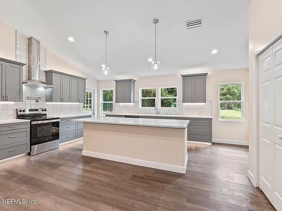 Welcome to your brand-new home by Precision Home Builders! Step inside to discover a bright, open-concept 1,490 square foot split floor with 3-bedrooms and 2-bathrooms. Upon entering you'll notice the high vaulted ceilings that make the living and kitchen areas feel spacious and inviting. The kitchen is a showstopper with automatic under-toe lighting, a convenient pot filler, and plenty of counter space to inspire your inner chef. The primary suite provides a private retreat with a beautifully finished en-suite bath complete with a large closet. The additional bedrooms offer comfort and flexibility for guests, family, or a home office. Outside, you'll find yourself surrounded by the tranquil beauty of the St. Johns River area, where fishing, boating, and kayaking are part of everyday life. Whether you're looking for a full-time residence or a weekend getaway, this home delivers the best of Florida living. Please note that this property has been virtually staged. The furnishings and décor shown are for illustrative purposes only. All information deemed reliable but not guaranteed. Buyer is responsible for verifying all information.