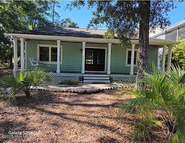 This charming coastal cottage is perfectly situated on a beautiful tree-lined SE 9th street, just steps from the scenic canal walkover, and easy beach access. Enjoy a quick stroll to the ocean while taking in gorgeous water views and coastal wildlife. A welcoming front porch invites you to relax in the refreshing ocean breezes, complete with a classic bench swing, perfect for visiting with neighbors or guests. Step through the impressive double mahogany doors into the beautiful great room, featuring vaulted, whitewashed beadboard ceilings and rich southern pine floors. The large modern, expanded kitchen opens to a bright sunroom, enhanced with whitewashed beadboard walls and large windows that fill the space with natural light. This home offers three bedrooms and two full baths, all on one level, providing plenty of space for family and guests. Additional features include: Sealed crawlspace with dehumidifier for year-round comfort and efficiency . Detached storage shed, ideal for all your beach gear. Prime location convenient to the bridge and mainland access yet outside the designated flood zone (no flood insurance required!). The Town of Oak Island offers an abundance of amenities, golf, tennis, basketball, picnic areas, boat launches, public docks, and water access, all with no HOA fees!