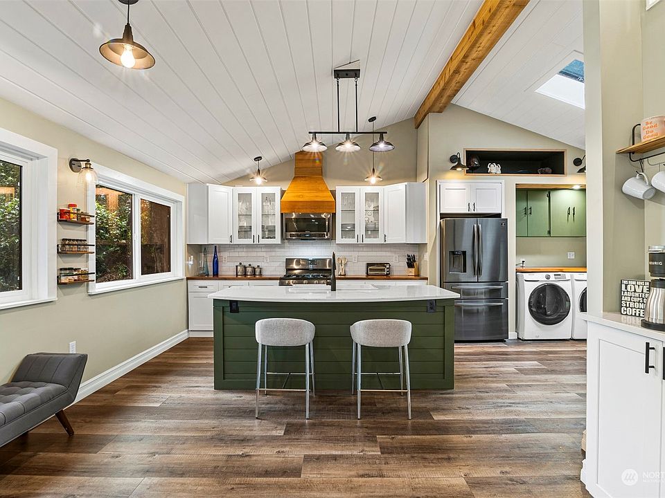 Welcome to a completely updated mid-century modern home in Normandy Park with Lot A Beach Rights access to "The Cove." You'll appreciate the vaulted ceilings & skylights that provide an abundance of natural light, convenient open floor plan with all rooms on 1 level, fully fenced private backyard & quality updates throughout. Features include new high efficiency HVC system w/AC, new tankless hot water heater, 3 bedrooms, large kitchen island, gorgeously updated bathrooms, shed/shop with power, new washer/dryer, gas oven & range, wood fireplace, oak hardwoods & large driveway w/plenty of guest parking. The Cove is 18 acres incl 700 feet of waterfront, clubhouse, tennis courts, pickleball courts, trails, creeks & more. $5000 Credit to Buyer!
