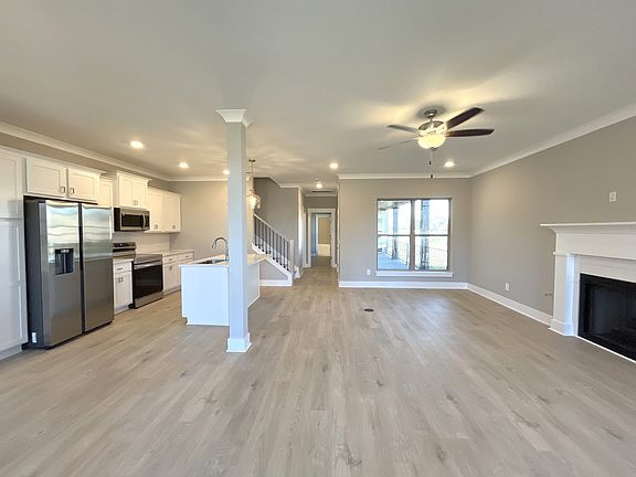 Charming and versatile, this 3-bed, 2-bath, 1,967 sq ft all-brick home in The Paddock at Kennesaw Farms offers thoughtful design and upgraded finishes. The kitchen features quartz countertops, designer tile backsplash, upgraded cabinetry, and stainless appliances, opening to a dining area and spacious living room with a gas fireplace. Durable laminate flooring enhances the main level, while plush carpet adds comfort upstairs and tile accents each bath. The primary suite includes a soaking tub, tiled shower, and dual vanities, while two additional bedrooms and a rec room provide flexible living options. A rear-entry 2-car garage, neutral paint, and upgraded finishes complete the home. Residents of The Paddock enjoy neighborhood charm, green space, and a convenient location near Station Camp schools, shopping, and commuter routes. HOA includes lawn maintenance and sprinklers for low-maintenance living. Ask about our builder incentives!
