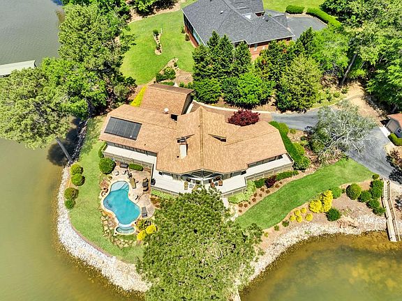Distinctive A-frame Lake Home on 11,400-acre Lake Greenwood sits on a 1.11+/- acre semi-point lot with almost 500' deepwater lake frontage, outrageous big water views, saltwater pool, and detached garage - all in the calm sheltered section of Lake Greenwood known as Hidden Lake. Love the details — rough-hewn lumber accents from Charleston Harbor, marble and abalone-tiled backsplashes, new warm hardwoods and custom tile flooring, interesting fans, and vaulted beamed ceilings. Mostly on ONE LEVEL, this home presents a desirable split bedroom plan for privacy, plus a loft Bedroom/Full Bath suitable for other flex needs- a den, craft area, office. Many upgrades and updates ensure elegant comfort without sacrificing the unique style of this Statement Home. The Great Room features a soaring 22 ft ceiling, a wall of windows for a fabulous PANORAMIC LAKE VIEW, and a raised hearth gas fireplace with remarkable floor-to-ceiling stonework. Beautifully updated Kitchen features a farm sink, super quiet Bosch DW, double-oven/convection/air-fryer, gas stove, warm wood hood/fan, flowing granite, ice machine (yay!), and all new soft-close deep-drawer cabinetry, giving you a glorious amount of storage space. You will absolutely revel in the luxuriously large Primary Bedroom with its Fabulous View and big sliders, updated bath, and redesigned closets to provide optimal organization. Updated Guest Bath has jetted tub, and the Roomy Laundry Room has a sink and 2nd fridge. Utilities and house systems are top-notch: energy-efficient 3M tinted windows provide privacy and reduced glare, updated blinds on all windows with remote-control for upper sunshades, newer HVAC system (2021), and an additional HVAC split system in 2022 provide optimal climate control. No worries about the crawl space either - it's proactively sealed and auto-dehumidified. New gutter guards and stylish awnings were added to protect the home. Under a termite-bond. BTW, a 1-year general Home Warranty is being provided by Sellers, so you have complete peace of mind. Outside, professionally done landscaping and a spacious new Wrap-around composite Porch make for superior outdoor relaxing and entertaining. A solar-heated infinity-edge Saltwater Pool lets you and your guests enjoy a refreshing swim year-round when you don't feel like jumping in the lake! (And there's a pool temperature monitor in-house). Appreciate the floating Covered Boat Lift that makes it easy to get on-and-off your boat year-round, on DEEP YEAR-ROUND WATER. This beautiful Lindal-built cedar-sided lakehome has LONG VIEWS, a long private driveway, a convenient storage shed, new stairs down the lawn, and a separate satellite lot for septic. A perfect blend of luxury and comfort, and with a Southern exposure, you'll experience STUNNING offset sunrises, moonrises and sunsets that are truly Amazing—All The Time. Gated Crystal Bay lake community offers an excellent location for fast, easy access to town and amenities, with a Secured Storage Area for your RV and trailers, a Community Picnic Pavilion for social gatherings, and a convenient near-level Boat Ramp. Are you ready to LOVE YOUR LAKE LIFE?