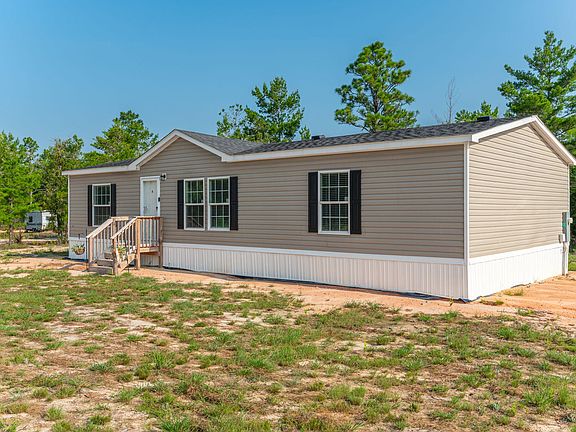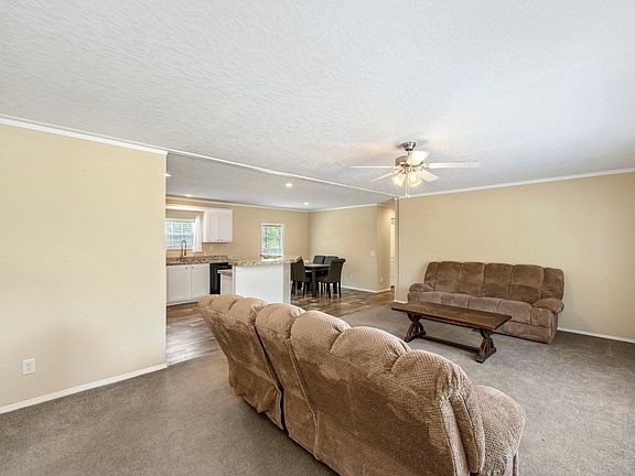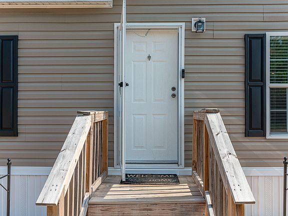 This 2022 manufactured home sits on a .23-acre lot and offers 1,352 sq ft of comfortable living space. It features 3 bedrooms, 2 baths, and a split floor plan. The home is equipped with central air conditioning and heating. The kitchen includes matching appliances and a breakfast bar. Carpeted living area and bedrooms, with vinyl flooring in wet areas. The ensuite boasts a separate walk-in shower and a large tub. Each bedroom has a spacious closet, providing ample storage. This home is priced to move. Don't miss the opportunity to make it yours.