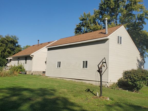 Check out this one story home with an extra lot on the corner. This home has two bedrooms, both with hardwood floors. The living room and dining rooms have wood laminate over hardwood floors. Kitchen has modern cabinets and counter top. The kitchen and basement have hookups for washer and dryer. It also has a shower and wash sink. You need to see the three car detached heated garage with attic that has barn siding on two walls. Could be a great get away space. The furnace and central A/C are two years old. The extra lot is 140 x 130. Give it a look.