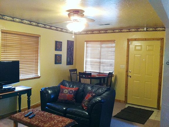 Relax in this comfortable three bedroom cabin, which comes fully furnished, including linens. The home has one full bath and a kitchen equipped with utensils and dishware. The setting is ideal, with deer often passing by the window and tall trees nearby. The yard features a flagstone patio and picnic table, making eating outside possible most of the year. The place is situated close to the Ruidoso River and within walking distance of midtown shopping and dining. Perfect to live in or own as a nightly rental.