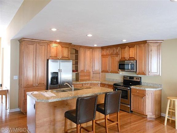 ARE YOU READY TO RELAX & ENJOY LIFE? Come take a look at this spacious 4 bedroom, 3 full bath, Stone Gate Condominium located in the Village of Spring Lake. You'll love the hardwood floors, the light & bright open floor plan, cathedral ceilings in the living room warmed by the gas log fireplace & kitchen w/stainless steel appliances, granite countertops & center island w/snack bar. Adjoining dining area has sliders that open to the deck for grilling & outdoor entertaining. Convenient main floor laundry, bedroom, full bath plus Master Suite with tiled walk-in shower. Lower level includes nice family room, 2 bedrooms, full bath & plenty of storage space. Two stall attached garage. Shopping & dining is nearby. Call today for your private tour!