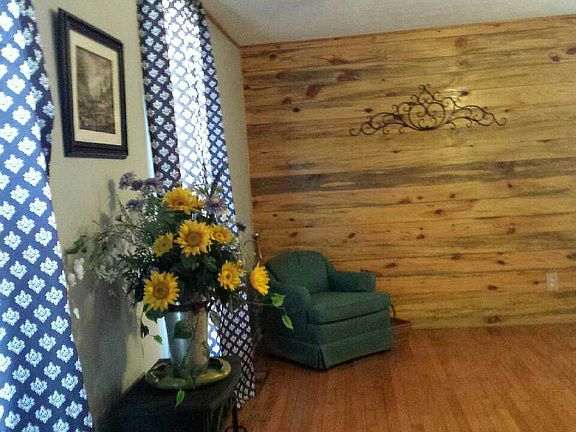 Feel the charm. Private 15.54 wooded acres with updated farmhouse and detached 2 car garage. Garage even has a shower and toilet. Lots of wildlife with small creek, a hunter's dream. All new windows, roof, paint, flooring, vanities, toilets, light fixtures, ceiling fans, curtains, french door, and appliances. Some walls and ceilings have reclaimed wood and kitchen countertop is real wood with beautiful grain. Master Bedroom Suite is 23 ft. X 14 ft. with adjoining bathroom. Relax on your back porch with new tin roof and listen to the rain. Location is central to lake areas, Uwharrie National Forest, and pottery country.