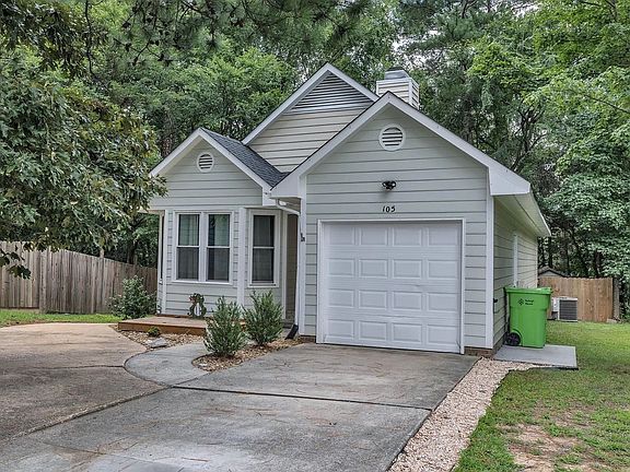 Welcome to 105 Tall Rock Ctan impeccably remodeled ranch retreat tucked at the end of a quiet cul-de-sac in Raleigh. This 2 bed, 2 bath home dazzles with designer finishes and bright, airy living spaces. Step inside to find all-new luxury vinyl plank flooring, a completely reimagined kitchen with granite counters, shaker cabinetry, and stainless appliances. The open-concept living area is anchored by soaring cathedral ceilings and framed by oversized windows that flood the space with natural light. Charming architectural details like built-in window seats, matte black fixtures, and custom tile work in the baths elevate the style throughout. Both bathrooms feel like a spa, with updated vanities, modern tile, and soaking tubs. Easy access utility space for washer and dryer, and exterior shed for extra storage. Fenced backyard offers wooded views and a private deck perfect for morning coffee or evening unwind. Other highlights include a new HVAC (2024 with permits), fresh interior and exterior paint, and a 1-car garage. Fantastic locationjust minutes to WakeMed, parks, and greenwaysstylish, move-in ready.