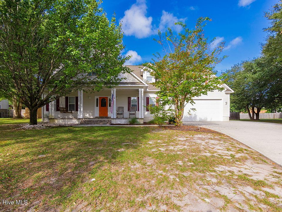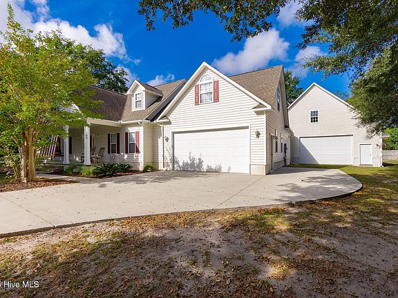 Welcome to 105 Tar Kiln Lane, a beautifully maintained 3-bedroom 3.5 bath home offering over 2,100 square feet of inviting living space. Featuring nearly a half-acre in a quiet neighborhood, this home combines comfort, functionality and coastal charm. High ceilings, custom trim details, and a bright, open floor plan makes this home perfect for entertaining. Spacious kitchen features custom counter-tops, plenty of counter space, warm maple cabinets and flows seamlessly into the living and dining areas. A finished room over the garage with its own bathroom and attic access-ideal for guests, home office or media room. Fully screened in back porch overlooking a generous backyard with room to garden, play or simply unwind. An attached 2-car garage offers ample storage space. A detached 30x40 garage sits just off to the side and features an unfinished space above with staircase access to the side. Perfect workshop with plenty of storage space available.