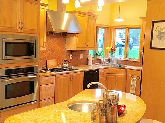 A lovely, unique home w/space for everyone. A "Chef's kitchen" includes a professional grade cooktop, microwave & convection oven, also a "coffee bar", a center island w/ a prep sink, a breakfast bar & recycling bin...plenty of Schrock cabinets & great storage. A soaring 23' cedar vaulted ceiling & FRPL w/windows on either side create a very comfortable atmosphere in the LR. A 11x23 space is divided by furniture layout, creating both the dining area & a FR. On the 1st flr a lovely mstr bath opens onto a private deck housing a hot tub. A 2nd bdrm & laundry rm are found on this level. Upstairs is a 13x17 loft, a full bath, a bdrm & attic storage. A lovely 22x18 "craft" rm & a half bath are on the lower level...this area has so many uses w/a WB stove & large window overlooking back yd. **Buyer lost Financing.**