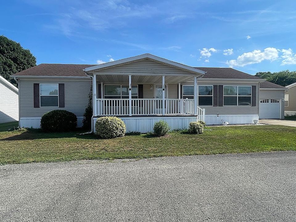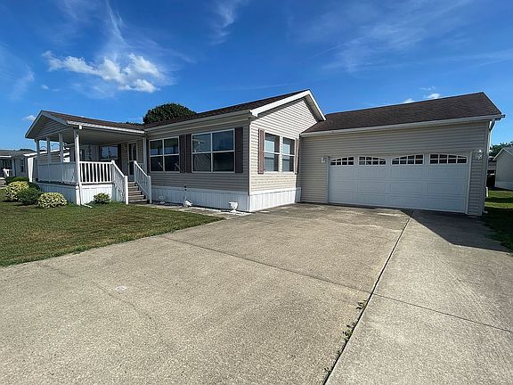 This is in the Miamisport Community & this manufactured home has 3 bedrooms & 2 full baths. The large master suite is a true retreat, featuring a generous walk-in closet and a luxurious ensuite bath complete with a stand-up shower, soaking tub, double vanities, and a dedicated makeup area. The open-concept kitchen includes an island with seating, seamlessly connecting to the dining and living areas—perfect for entertaining or everyday living. An oversized attached two-car garage provides ample space for vehicles, storage, and even a workshop area. Enjoy your morning coffee or evening relaxation on the inviting front porch, making this home as practical as it is cozy.